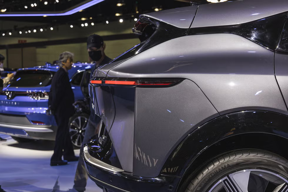 Phần đầu xe nổi bật với dải đèn LED hình cánh chim đặc trưng, kết hợp cùng cụm đèn pha LED đặt thấp dưới nắp capo, tăng hiệu quả chiếu sáng và thẩm mỹ. Lưới tản nhiệt được loại bỏ, mang lại vẻ tối giản và thanh lịch. Mui xe vuốt thấp về phía sau, tạo dáng coupe thể thao, đồng thời tăng tính khí động học. Tay nắm cửa dạng ẩn cùng cổng sạc đặt dưới cột A góp phần hoàn thiện thiết kế hiện đại và tiện dụng.
