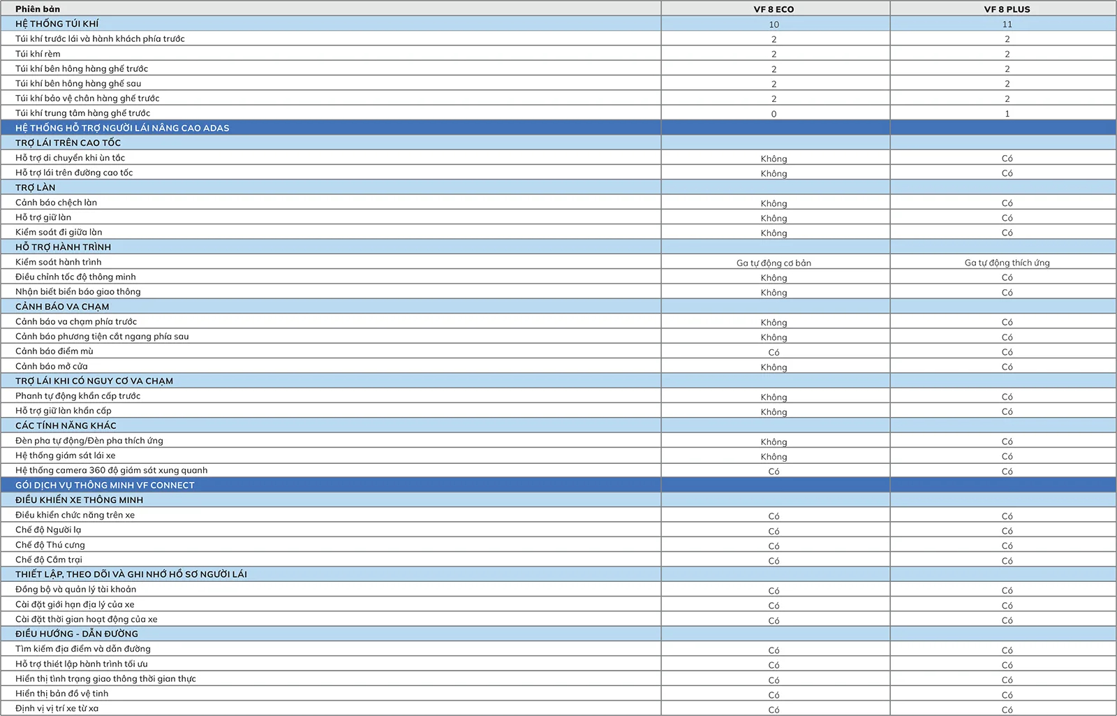 Các tính năng an toàn nổi bật trên VinFast VF 8 gồm: