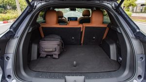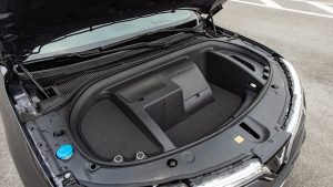 Đuôi xe thiết kế liền mạch với phần cánh gió, dải đèn LED và cốp sau đóng/mở điện (bản Plus), vừa tăng tính thẩm mỹ vừa hỗ trợ ổn định khi xe di chuyển ở tốc độ cao. Đặc biệt, dưới nắp capo phía trước còn có thêm một khoang hành lý phụ dung tích 78 lít, tăng tiện ích sử dụng.